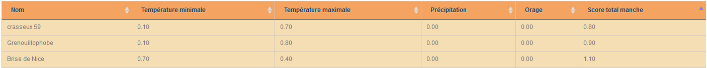 La manche est remportée par "crasseux59" avec 0,8 pt devant "Grenouillophobe" avec 0,9 pt et Brise de Nice avec 1.1 pt.