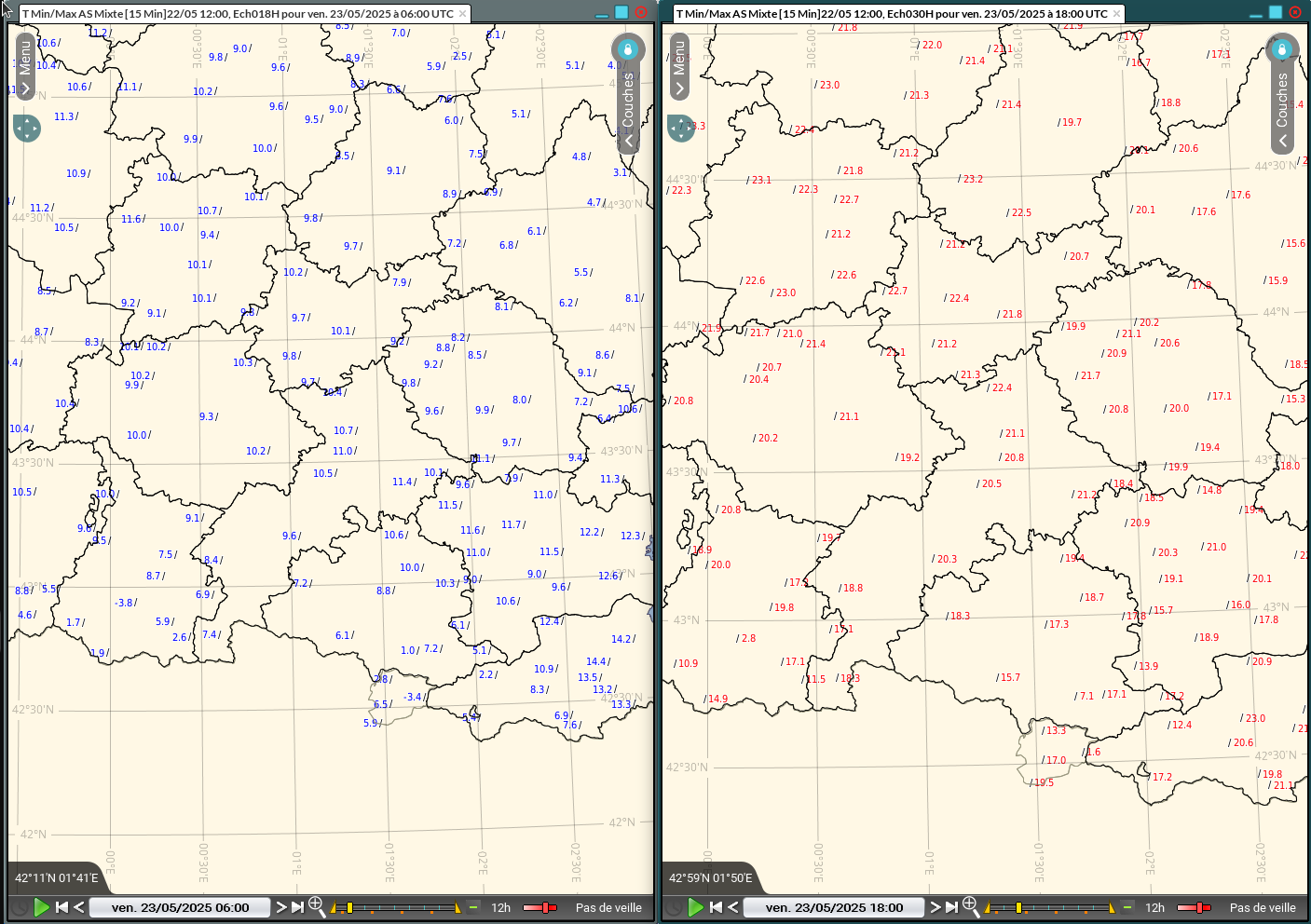 Figure 9 : ASMIXTES 12Z Tn à droite, Tx à gauche