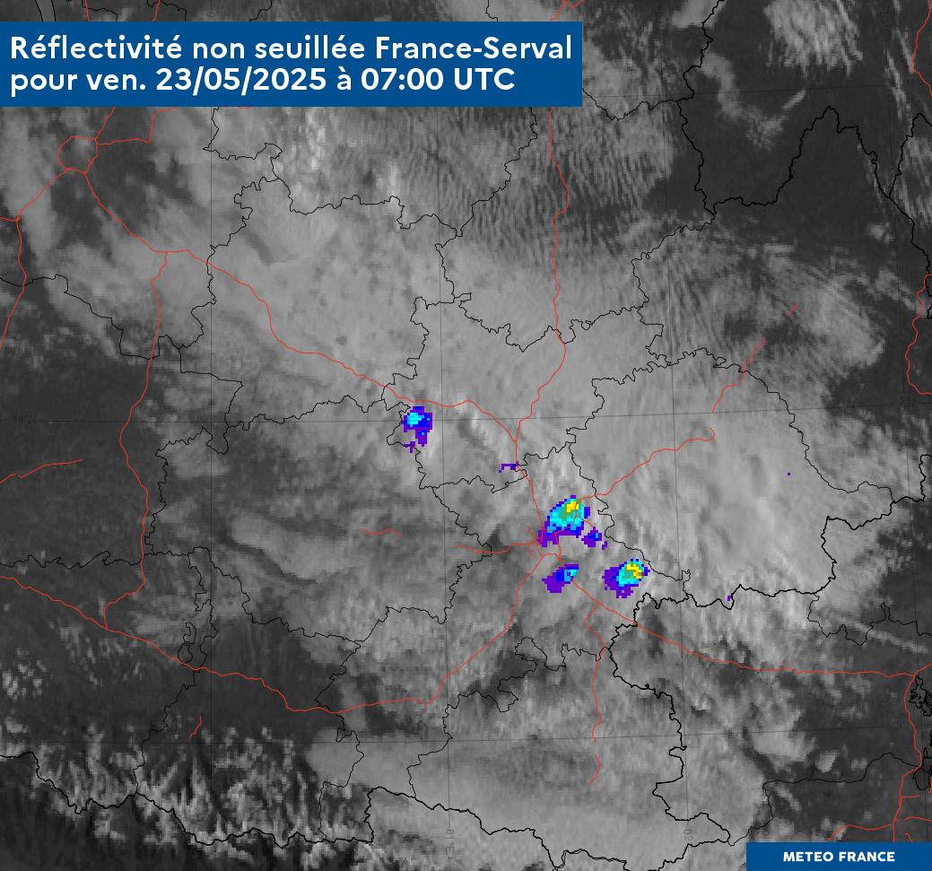 Figure 10: Observation satellite MTG et Rflc non seuillées France Serval le 23/05/2025 à 07Z