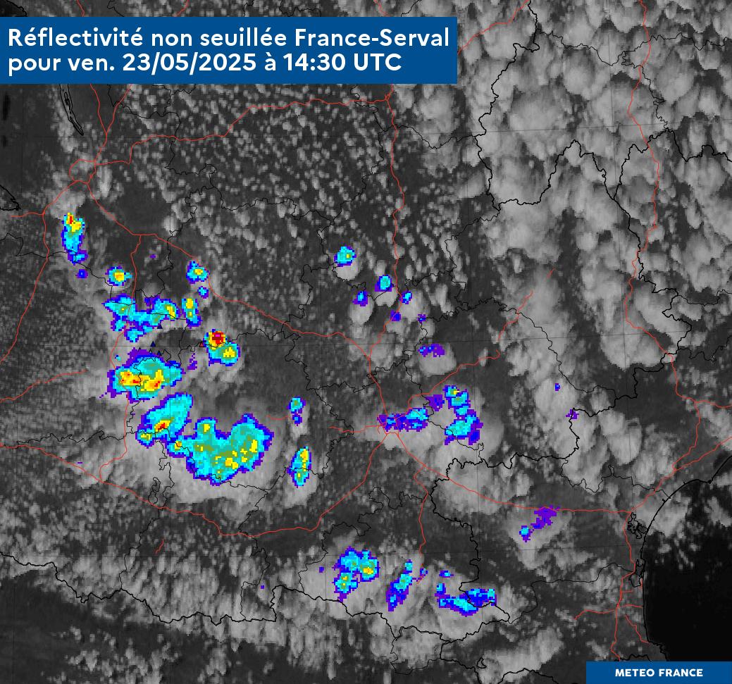 Figure 11: Observation satelitte MTG et Rflc non seuillées France Serval le 23/05/2025 à 14:30 Z
